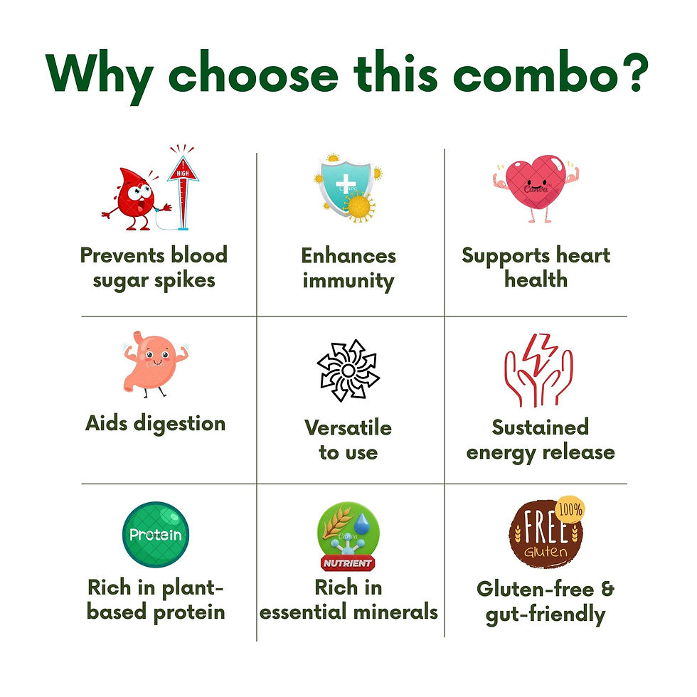 Real, lasting energy comes from whole foods. Our Fruit and Nut Muesli provides complex carbs, protein, and healthy fats for sustained morning energy. The Daily Power Grain Atta Combo (maize, gram, bajra) gives you rotis that won't cause post-meal drowsiness.